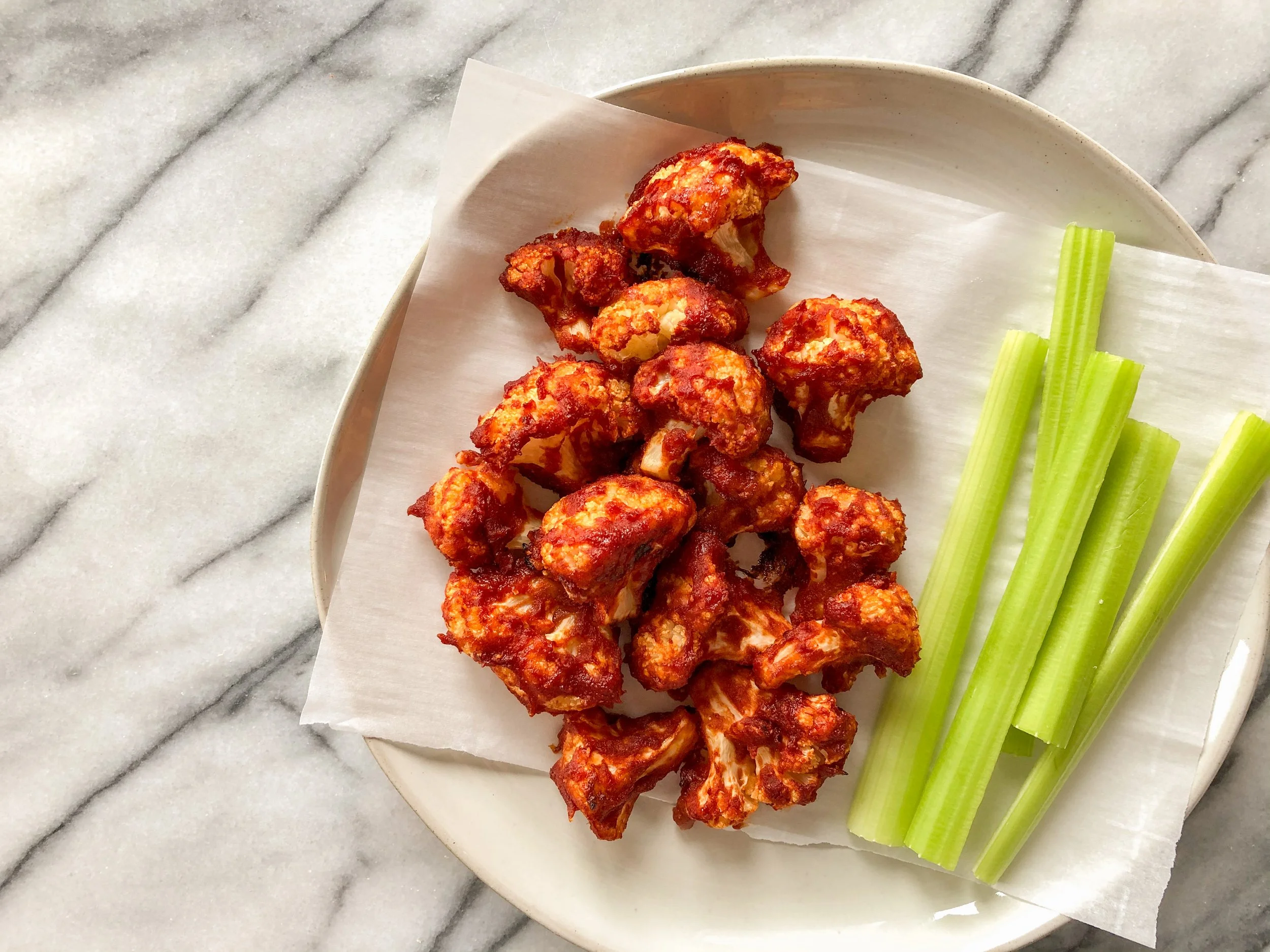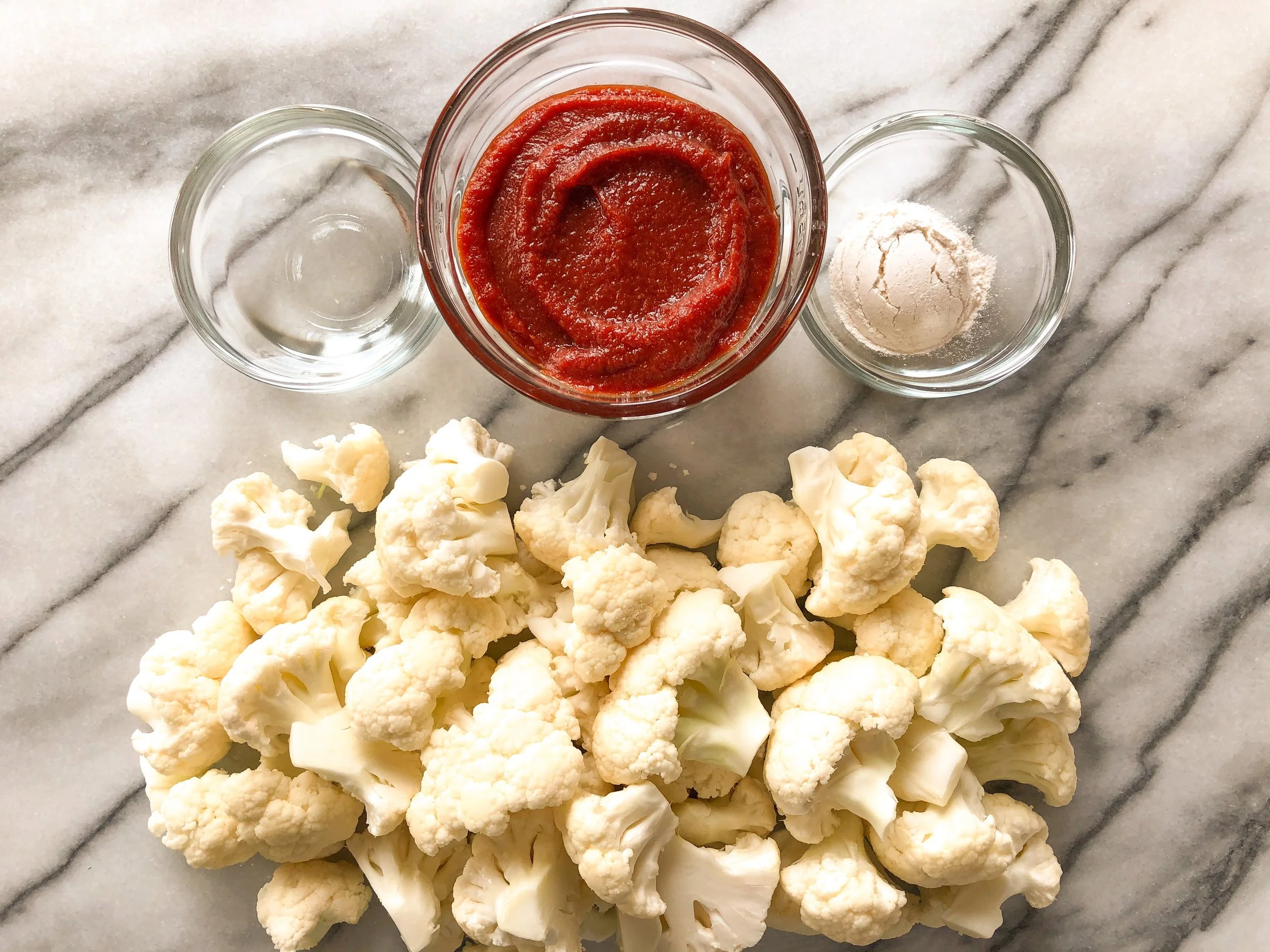 Bake cauliflower 15 minutes, then flip and bake additional 15 minutes. Remove from oven & cover with BBQ sauce!
